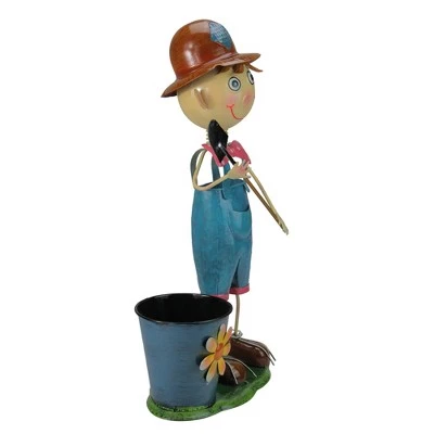 Afford a genuine natural charm to your garden space with this outdoor planter to place your floral arrangements. This casual yet majestic planter lends a unique look to your lawn. It provides a beautiful statement on its own.Product Features:Boy with shovel spring outdoor garden planterWearing blue overalls and a pink with white polka dot bow tieHolding a shovel while standing next to a blue planterNeck is a spring which allows his head to bobble aroundNo assembly requiredPlanter does not have drainage holesRecommended for indoor or outdoor usePerfect for any garden, patio or porch cheerfulDimensions: 20″H x 11″W x 6″DMaterial(s): tin