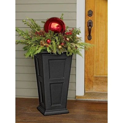 Dress up your landscape with these elegant, self-watering planters. They are rather tall planters at 28″ high, adding some drama to your patio. With clean lines and raised panel detailing, they have the look of fine woodworking. But, unlike wooden planters these are virtually maintenance free because they’re made from high quality polyethylene — there’s no need for annual painting or staining. With the best UV protection in the industry, these planters have a 15-year guarantee against fading. They have built-in reservoirs to supply a slow, steady supply of water to plants — just what plants need for healthy, stress-free growth.