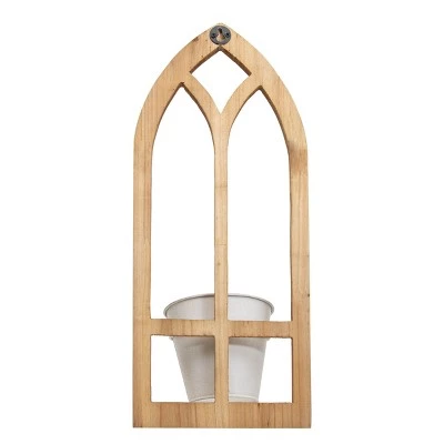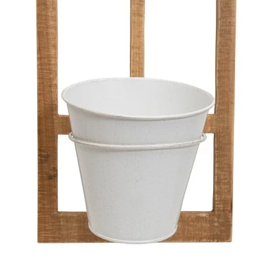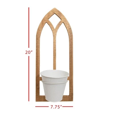 Display your favorite small vining plant in this statement wall planter. You will enjoy the traditional combination of natural wood and white, especially with a beautiful pop of greenery or flowers on you wall. The clean white pot floats in front of a long wooden frame that mimics vintage architectural windows, as if your plant were delicately placed on a windowsill.
