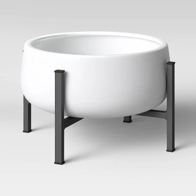Highlight your greenery with this White Ceramic/Metal Planter from Project 62β’. This ceramic and metal planter makes a great addition to your home decor. It features an attractive glazed white pot with a rounded bottom for fresh, chic style. This freestanding ground planter rests on a sleek black metal stand to add some height to a favorite house plant display. Whether you display it solo or use it to vary height among a cluster of plants in a corner, you’ll love the look this ceramic and metal plant stand adds to your decor.