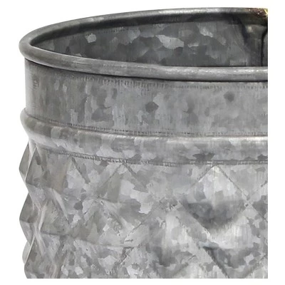 Stonebriar’s antique galvanized metal planter is the perfect addition to your farmhouse home decor. This planter measures at 5 inches in height and is the perfect size for small potted plants or to store supplies in your home or office. Galvanized planter features a decorative diamond embossed design with a rustic finish. Buy your Stonebriar antique galvanized metal planter by itself or mix and match with other Stonebriar Collection pieces.