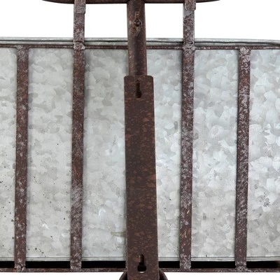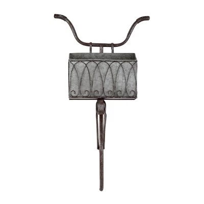 This unique wall planter features an antique style bicycle sculpture with rusted brown handlebars, scrolled fender, and metal wheel cradling a large front basket with decorative scrollwork. Inside, a large rectangular galvanized metal plant box can securely hold and display your favorite flowers, herbs, or plants. The bicycle wall decor looks like its popping out from your wall, creating an eye-catching centerpiece in your patio, deck, or garden area. This outdoor planter is easy and ready to hang by built-in hardware. Add some flowers or plants to complete its stunning look, and perfect to hang on any light-toned wall Wipe clean with a dry cloth. Metal wall planter basket in an antique style bicycle Easy and ready to hang by keyhole hardware. Suitable for indoor and outdoor use No drainage holes Farmhouse-themed style. This item comes shipped in one carton.