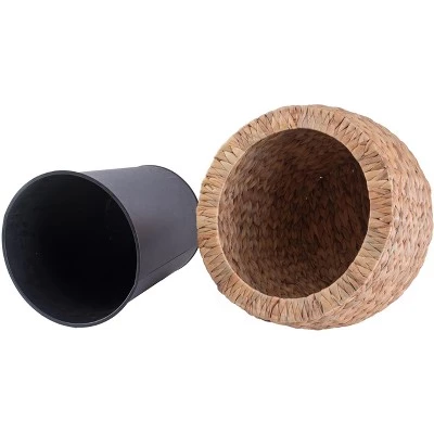 Create a greener home whether by planting herbs, veggies, and flowers in these unique water hyacinth planters. Water Hyacinth exterior offers a rustic touch to you home planting and durable metal interior pot provides secure base for your sprouts. Ideal to use in entryways, doorways, and and type of room these planters will welcome botanical life into any area placed.