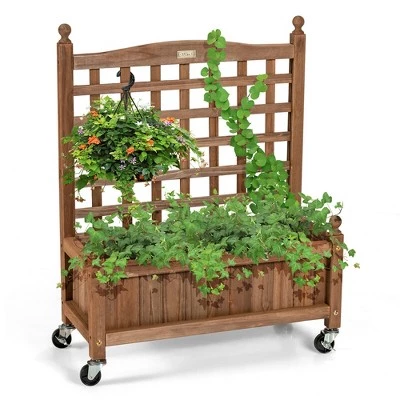 Get this wonderful planter and start to create your own garden! This planter features a perfect combination of a 6.5” depth planting bed and a trellis, which provide you with more choices to plant different kinds of vegetables, fruits, herbs, flowers, and climbing plants. It is made of natural fir wood, which makes it more stable and durable. Each intersection of the lattice trellis is fixed with a nail, ensuring that it will not deform easily even bear large weight. And the considerate drainage hole at bottom can effectively keep the water at a proper level. Specification: Color: Natural. Material: Fir Wood. Product Dimensions: 25” x 11” x 32.5” (L x W x H). Net Weight: 20/40 lbs. Weight Capacity of Plant Bed: 66 lbs. Weighty Capacity of Plant Trellis: 11 lbs. Package Includes:. 1/2 x Planter Bed with Trellis.