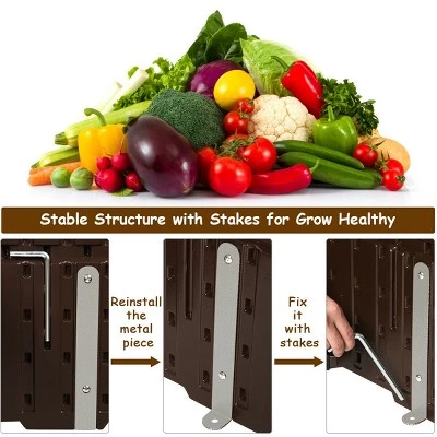Want to create your own unique private garden? This large raised garden bed is a good solution to ensure the healthy growth of your plants while protecting them from your pets. The plant box is made of high-density polyethylene (HDPE), which is weather-resistant and rugged and great for outdoor using. Unlike other planting boxes, this planting box uses slot connection, so it is not only easier to assemble, but tightly connected. The ground stakes and corner brackets are design to keep the plant box in place and ensure plant safety. Additionally, the large square raised garden bed with classic style can help you grow plants as well as decor your garden. Specification: Color: Brown. Material: HDPE. Overall Dimension: 48.5”x 48.5”x 12” (L x W x H). Net Weight: 20 lbs. Package Include:. 1 x Raised plant box. 4 x ground stake. 1 x instruction.
