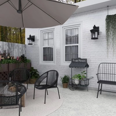 This Farmhouse style flower cart has adorable style, from its rolling canopy with a “FRESH FLOWERS” stencil to its large, old-fashioned wheels. Made from iron, this garden cart is lightweight and easy to pull from by large arched handle and sits upright on the metal kickstand to keep your potted plants in place. The rectangular planter box has iron bars to secure your pots but are spaced enough for beautiful display. The large, metal canopy keeps direct sunlight from harming your more sensitive perennials. This outdoor planter plant stand will bring a cozy feel to your garden area entryway or enjoy it in the backyard from your deck. This stunning trolley cart plantstand is ideal for outdoor usage and blends well with vintage and retro-themed furniture Wipe clean with a dry cloth. Lightweight & easy to pull. Suitable for indoor and outdoor use. Farmhouse-themed style Showcases a spray-painted “FRESH FLOWERS” text in white. This item comes shipped in one carton. Maximum weight limit is 5 lbs. per shelf.