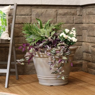 Give your plants room to grow on your patio or deck with a round decorative indoor/outdoor planter. Made of lightweight and durable linear low density polyethylene, this planter can be easily moved to your desired location, yet is weather resistant. This hand-painted planter has a beautiful color and the style works well with many different types of decor. Not only is this planter great outdoors, but it can also be used indoors when paired with a protective saucer.