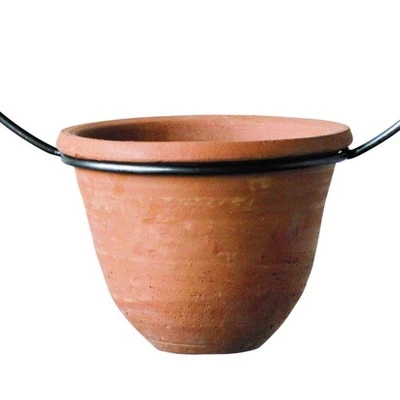 This two piece wall décor has a metal hanging frame with terracotta pot. Fill it will a small plant and hang on your wall. Collect several and hang a grouping of theme at varying heights to create a beautiful botanical piece of wall art. The terracotta shade of this pot allows it to fit into a variety of color schemes.