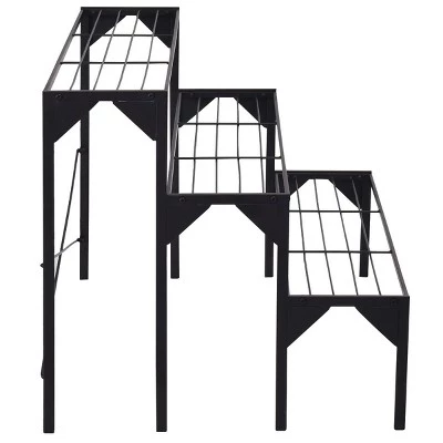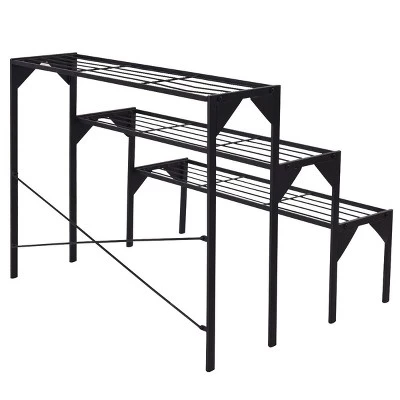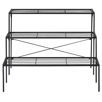 This is our 3 tiers flower plant display stand. Made of durable and durable steel construction with a sleek black finish, this 3 tier display rack complements any home decor and provides the perfect to display decorative items. You can place your favorite potted plants or your shoes, handbags and other items on it. The modern style and the beautiful appearance will decorate your home, deck, or patio. It brings both style and storage to any space. Specification: Material:steel. Weight:11lbs. Product size:34.0”x 26.0”x26.0”(L x W x H). The height of plate:10.0”/18.0”/26.0”. The width of plate:9.0”. Weight capacity of each tier:66lbs. Package includes:1 X 3 Tier Shelf Flower Plant Display Stand Rack.
