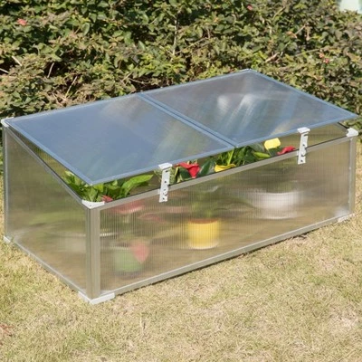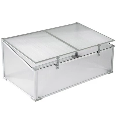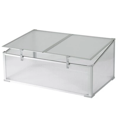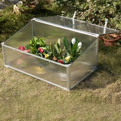Keep your flowers, plants, herbs or vegetables protected with this mini greenhouse. Composed out of durable plastic, aluminum and rust-resistant frame. Roof opening provides easy access to your plants and ensures proper ventilation. In sunny days open up the lid to let your plants absorb the sunlight and in rainy days close the top to protect it from the rain. Additionally, adjustable height locking mechanism allows door to remain open. Large interior storage capacity accommodates various types of plants.