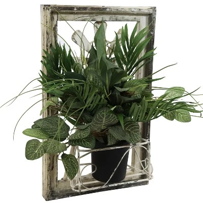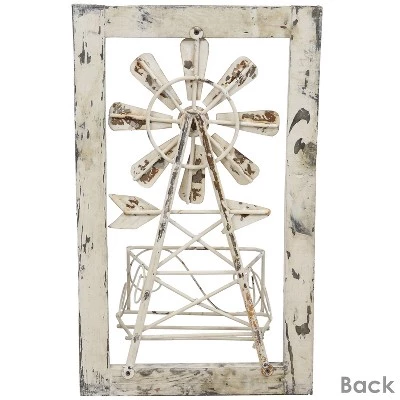 Set this framed planter in a window or against a wall to add a weathered, rustic touch to your home or outdoor spaces. This windmill framed planter is made from durable hand-painted metal with a hand-painted wooden frame. This decorative planter is perfect for adding a farmhouse touch to your living space or for displaying your favorite flowers or greenery. When used outdoors, a patina finish will develop over time.