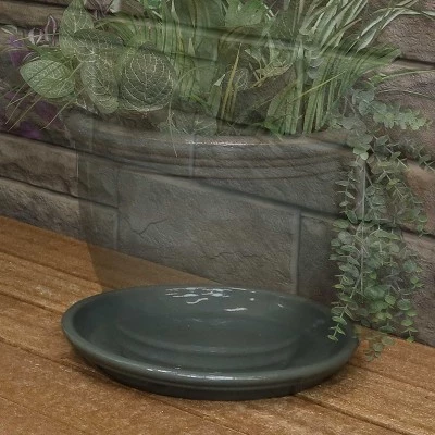 Use this set of 4 saucers with favorite planters to protect floors and other surfaces inside or outside the home. The round, hand-painted saucer trays are a great tool to use with favorite planters to be able to use them inside the house or just on the deck to prevent any water damage. It features vibrant coloring and has a raised edge to collect excess water and soil spillage.