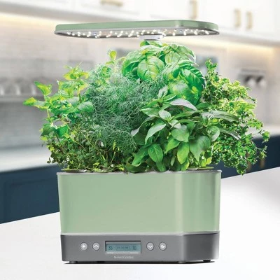 Grow up to 6 different herbs, veggies or flower varieties all year long – no sun, no soil and no green thumb required. The AeroGarden Harvest Elite has a compact shape, sleek stainless-steel finish and a super easy control panel with digital display making it perfect for any kitchen. Have fresh flavors right at your fingertips no matter what the weather is like outside. The Harvest Elite’s grow light hood contains 20 watts of white, red and blue LED lights, giving your plants the full spectrum of sunlight they need to grow, and grow quickly! Plants grow 5X faster than in a traditional outdoor garden. And the automatic timer makes sure the lights go on and off at exactly the right time. The garden adjusts for up to 12″ of grow height and the digital display reminds you when to add water and our patented liquid plant food so keeping your plant babies happy and thriving is never a problem. Plus with vacation mode, your garden will stay healthy while you rack up some travel miles. The Harvest Elite literally sets up in minutes, so you can get back to pinning all the recipes you’ll soon be making with your amazingly fresh herbs and veggies. Just drop the included seed pods in your garden, fill the bowl with water and some plant food, plug it in and you’re good to go! Want garden fresh tomatoes in the dead of winter? No problem! How about beautiful petunias for months on end with no florists fee? Done and done. And if you ever get a seed pod from our 70+ varieties that doesn’t sprout, just give us a call! We have a germination guarantee and will get a new seed pod in the mail to you lickety split. So get growing!