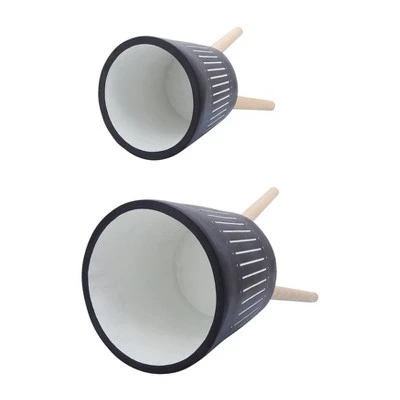 Set of 2 Ceramic planter with line design on the exterior. It has a matte finish and the wood legs screw into the bottom of planter. This beautiful piece will be a great addition to your living room or entry way.Sagebrook Home has been formed from a love of design, a commitment to service and a dedication to quality. They create and import fashion forward items in the most popular design styles. Backed with years of experience in the textile field, They are now providing a complete Home decor story. the combination of wall decor, furniture, lighting and Home accessories are all coordinated with textiles to provide a complete Home look. Sagebrook Home is committed to providing the best Home décor and accent pieces at value prices.