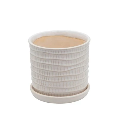 Place your favorite plants in this lovely set of planters. With a gorgeous abstract pattern on the outside, these planters will be a great way to display two different size plants. With a circumference of 6″ and 8″, a neutral beige finish with a gloss coat that will allow them to beautifully fit into your inside or outside decor.