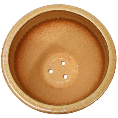 Add sophistication to any living space with this glazed ceramic planter pot. The Chalet Ceramic Planter has a beautiful glazed exterior and a rich color scheme. It features drainage holes to help keep outdoor plants in prime condition, for use indoors simply purchase a saucer separately so it doesn’t leak on the floor/table.