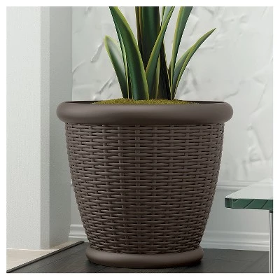 A pack of Willow Resin Wicker Decorative Planters from Suncast will make a beautiful and functional addition to your indoor or outdoor space. This pack of two wicker planters is suitable for both outdoor and indoor use and include a drain that makes managing water easy. These wicker planters will make for a stylish and durable accent piece for your plants.