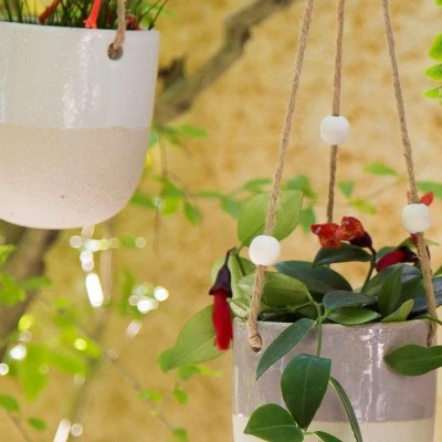 This lovely set of hanging pots comes in a set of four. Hang them together or separately throughout the home. Constructed of stoneware, each is glazed with a different neutral color. They can hold 4 inch pots, perfect to hang the best small plants.