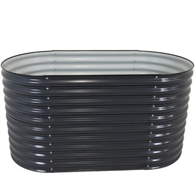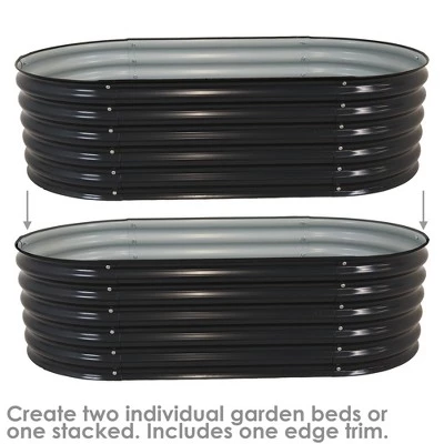 Grow vegetables, flowers, herbs, and more or make compost in your backyard or garden with this durable raised garden bed. Stack the two planter beds on top of each other for an even taller garden bed or use the two beds individually for a matching set. No matter what you choose, this raised planter is sure to provide a comfortable standing position as you tend to your plants due to its height. Elevated planter box is made from pre-painted galvalume steel for increased durability and resistance to rust and most weather conditions. Galvalume steel is made from a combination of zinc, aluminum, and silicon and is proven to last longer in wet conditions than galvanized steel. All hardware required for assembly and one rubber edge trim piece are included with this garden bed.