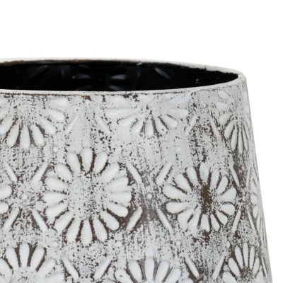 Part of the beautiful Arianna collection from Foreside Home & Garden, the Antique White Embossed Floral Pattern Arianna Planter is a metal planter that is embossed with a delicate floral pattern and finished with a distressed white washing. The light and airy look of this planter is complemented by rich greens.