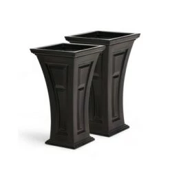 Perk up your porch, patio, or deck with the FCMP Outdoor Heritage Self-Watering Planter, 2-Pack. This set of outdoor planters was designed with versatility in mind. These BPA-free plastic planters can be used as self-watering units or as a place to put your pre-potted plants. If you don’t have much of a green thumb or want to take the work out of caring for plants, use these as self-watering planters. All you have to do is drill a small hole in the side just above the waterline. If you wish to use them as standard planters, just drill 2 small holes in the base. Voila- your planters are ready to go. With their simple, clean design, these planters will add some extra curb appeal to your home’s exterior while also adding a sense of symmetry. Place the 2 planters on each side of a doorway, walkway, or patio to create a balanced, zen feel.