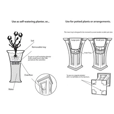 - Can be used as a self-watering planter or for as a place to put your pre-potted plats