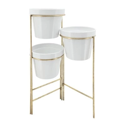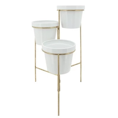 A clean and elegant design will bring a pristine touch of modern style to any home interior. Featuring a gold metal stand to add a glamorous touch to any green plant that is displayed in this beautiful planter. A perfect addition that can become a stunning view when paired with the right plants or flowers.