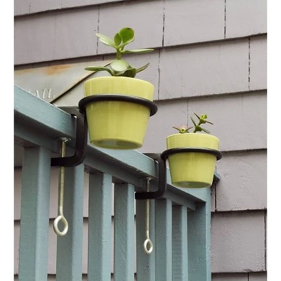 - SET OF 2 CLAMP ON HOLDERS FOR RIMMED FLOWER POTS: Whether youโre a fan of orchids, petunias, marigolds, or geraniums, these wrought iron pot holders are ideal for holding flowers and plants and taking advantage of vertical gardening space