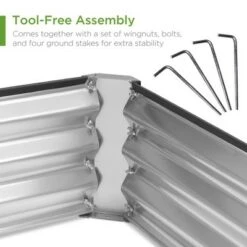 Create the perfect micro-environment to support any plant under the sun and enjoy 18 cubic feet of controlled space to experiment and nurture your favorite plant pals. An open base supports soil drainage, prevents leaching, and helps maintain soil health and balance. Made with powder-coated steel plates to withstand wear from the elements. A tool-free assembly means it comes together with a set of wingnuts, bolts, and four ground stakes for extra stability. Whether for herbs, flowers, succulents, or veggies, this planter is the perfect option to grow, grow, GROW!
