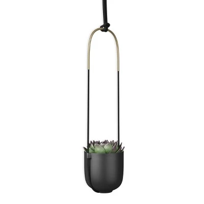 - DESIGNED BY SIMONE FERKUL FOR UMBRA: Made of durable black ceramic, BOLO has a partially brass-covered holder rope. The entire planter measures 6 inches diameter, and 43 inches in height (with the rope). Holds up to 6 lbs