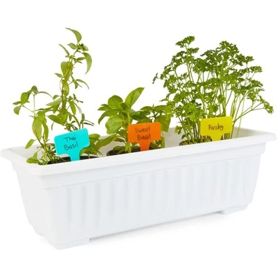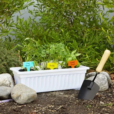 - Plastic Herb Planters: These white plastic window box planters are perfectly sized for starting flowers, herbs, and vegetable seedlings to use both indoors and outdoors