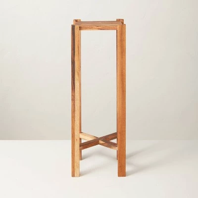 Display your favorite plant in style with this Squared Wood Plant Stand from Hearth & Handβ’ with Magnolia. This wooden plant stand showcases a square silhouette in a natural finish to add a lively focal point to any room in your house. Simply place this wooden plant stand beside your entryway, and then top it with sprawling plants or blooming flowers to create a fresh welcome that will lend the perfect finishing touch to your space.