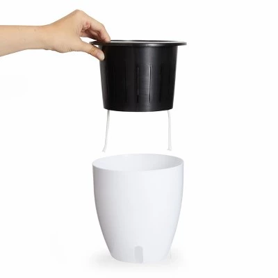Use this set of white self watering planter pots for herbs, succulents, African violets, and vegetables in your garden, patio, or kitchen. The cotton rope absorbs water to keep the soil hydrated while the double layer design allows that excess water to be resupplied into the plant for up to a week. For best results, we recommend refilling the indoor plant pots every 5-7 days. Each orchid pot has a diameter of 7 inches and stands 7.5 inches tall, perfectly sized to sit on a window sill, countertop, table, or desk.Product names are trademark of listed manufacturer or other owners, and are not trademarks of eForCity Corp. The manufacturer does not necessarily endorse use of these products.