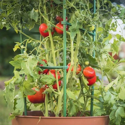 Support your tomatoes and other climbing plants with the versatile Ultomato Tomato Plant Cage from Gardener’s Blue Ribbon. This strong, durable cage features a modular design that lets you build it to suit your plant’s needs.Traditional steel cages can harm existing plants and potentially break branches and fruit. Featuring (3) 5-foot stakes and 9 snap-on arms, you can build the Ultomato Tomato cage around your plant, keeping its branches safe. You can even build it around established, already over-achieving plants without issue. The strong, steel-core design provides excellent support to your fruit, and the durable plastic coating lets you use it for many growing seasons. Designed specifically with tomato plants in mind, the cage is also compatible with other climbing fruits and vegetables such as pole beans, cucumbers, grapes, and kiwis.With a green color that blends in with your other plants and decor, never worry about sagging tomatoes or damaged fruit again. Give your prized fruits and vegetables the support they need with the Gardener’s Blue Ribbon Ultomato Tomato Plant Cage.