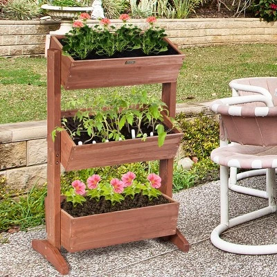Find a home for your plants! Our shelf is made of environment-friendly solid wood which is durable and strong, can bear a lot of weight. The surface is very smooth so it is very convenient to clean. You just need to wipe it with a cloth. It has many perfect designs, for example, the holes design. The height and inclination of this hole can be adjusted according to your requirements, and the holes on top two layers can make the excess water flow to the next layer to save the water. Its bottom support frame is curved so it can increase stability. At the same time, it has a large storage capacity, and each layer has a different capacity and height, and can hold different sizes of plants. What’s more, it’s very versatile. Each layer can be removed and used as a storage box. The unique shape also adds a view to your courtyard!. Specification: Color: brown. Main material: solid fir. Overall size: 29” x 15” x42” (L x W x H) . Net weight: 24.5 lbs. Maximum loads: 66 lbs. Interval height: 8.5”, 10.5” . Package includes: . 1 x 3-tier Wooden Flower Rack. 1 x Instructions.