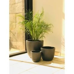 Give your potted plants a place to flourish that also easily complements the decor of your living or entertaining space with this Earthenware Planter from Smith & Hawken™. Featuring a stoneware construction suitable for indoor or outdoor use, as well as a convenient bottom tray, this beautiful planter also boasts a handmade pottery vibe that makes a great pairing with wicker or rattan patio furniture. The traditional design and dark gray hue make this stoneware planter a perfect pick for succulents, and allows you to add even more texture and organic elements to your patio, sun room or living room.