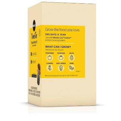 Save weeks of growing time vs. starting from seed when you use Miracle-Gro Twelve Plant Nutrition and Transplanting Kit. The Transplanting Kit coir liners hold soil in to protect the pump from clogging, but also let roots grow through to get the water and nutrients they need to thrive. Each easy-to-use packet comes pre-dosed, containing the essential nutrients that water-based plants need to thrive. Add one nutrition packet every 4 weeks–a clean and simple way to feed a variety of plants. Grow the food you love indoors 365 days a year with the complete Miracle-Gro Twelve system.