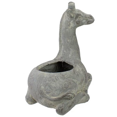 Keep part of the wild in your garden or outdoor living space with the addition of this giraffe planter! He makes a statement with his long neck and can hold any type of plant, and could be perfect for your succulents. This planter is perfect to place in your garden, your lawn, on your patio, or maybe right next to your front door!Features: Gray giraffe planterHe is sitting on all four legs His neck is outstretchedRough finished ceramic Suitable for indoor or outdoor useOpening is approximately 8 inches wideComposed of MgO ceramic for years of enjoymentDimensions:16″H x 14″W x 9.25″DMaterial(s): MgO ceramicNote: This planter does not have a drainage hole.