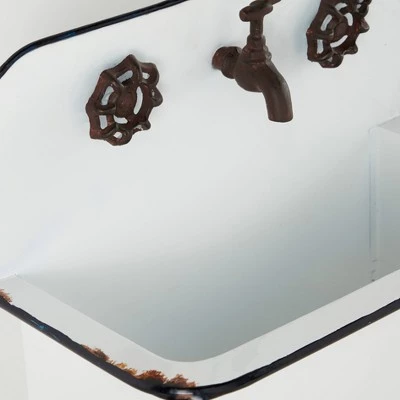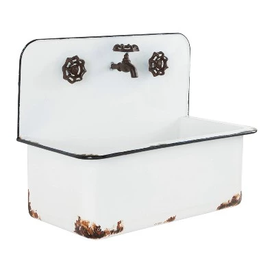 Rich in antiquated farmhouse style, this set of 2 white sink planters makes adorable and unique metal wall plant displays in your garden or indoor space. Each antique looking sink, one large and one small, has decorative rust and faucet accents for an authentic feel, and large enough bodies to hold several plants, large plants, and let long leaves cascade along the white metal for a romantic look. Flat backs let you display flush to any wall and are ready to hang by keyhole hardware. Hang these planters outside of your home or near your garden for a stylish look Wipe clean with a dry cloth. Ready to hang by keyhole hardware. Suitable for indoor and outdoor use. The set includes two planters. Farmhouse-themed style. This item comes shipped in one carton.