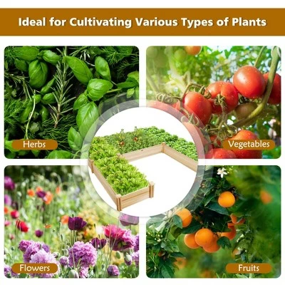 Do you want to cultivate some plants in your garden or balcony? Our planter raised bed is your ideal choice. Made of high-quality natural fir wood, this garden bed ensures sturdy and durable structure for long-term use. Consisting of five planter boxes, it provides ample growing area for your plants. With this raised bed, it is convenient to take care of plants and the boxes can be freely combined to satisfy your different needs. With this helpful planter, you can cultivate plenty of plants, vegetables, fruits, and flowers. Besides, the garden bed with rustic style matches well with your garden, patio, backyard, etc. It is also easy to assemble the garden bed by following steps. Specification: Color: Natural. Material: Fir Wood. Overall Dimension: 92.5”(L) x 95”(W) x 11”(H). Inner Dimension of Large Box: 45.5”(L) x 45.5”(W) x 9”(H). Inner Dimension of Small Box: 45.5”(L) x 21.5”(W) x 9”(H). Net Weight: 46.5lbs. Package includes:. 5 x Planter Boxes. 1 x User Guide.