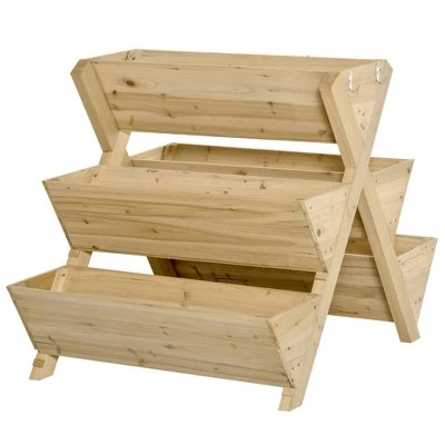 Would you like to add a beautiful view to your garden? This thoughtfully designed three-layer flower bed from Outsunny can do just the trick! This wooden raised planter box is made of a stable A-shape frame and durable solid fir wood that is perfect for the season after season of growing. Each side of this multi-tiered plant stand has 2 hooks for hanging small tools. Also, five planting areas can meet your various planting needs.