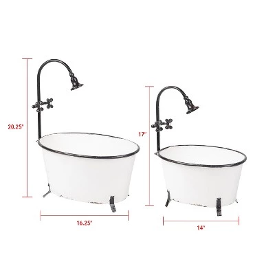 - Style: This set of 2 enamel bathtub planters are inspired by vintage claw-foot bathtubs and feature a distressed white enamel finish with a black rim. With it’s rustic style, this set of 2 decorative bathtub planters will fit perfectly with your favorite vintage decor.