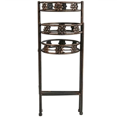 Display plants in style on the deck, patio, or in the house with this lovely three-tier plant stand. Each plant stand features a sturdy metal design with a stylish bronze paint finish. Plus, the stand is foldable making it easy to store when not in use.