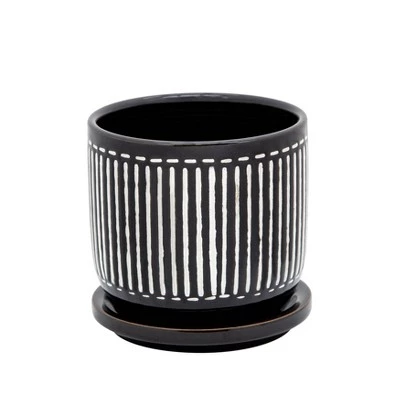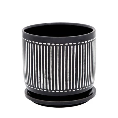 Discount 🔥 Vertical Lines Planter with Saucer Black – Sagebrook Home 🌟