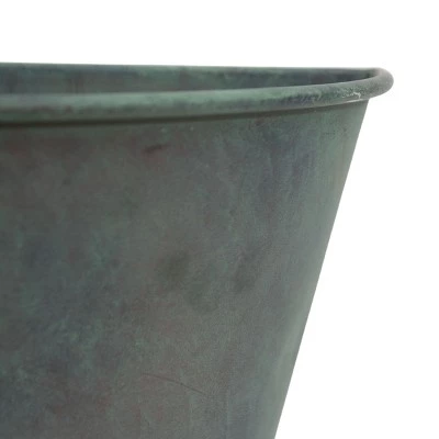 - Patina finished planters with antiqued bronze base that is brushed with turquoise accents.