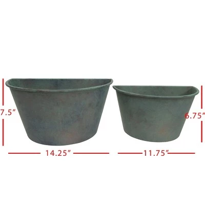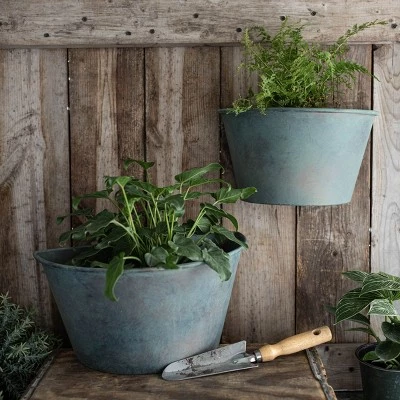 Give your favorite plants the home they deserve with this set of two cottage style wall planters from Foreside Home & Garden. These stunning patina metal planters feature a beautiful, antiqued bronze base with brushed turquoise over the top, enhancing their elegance. Their unique shape and dimensional finish allow them to stand out among the rest of your decor, especially when paired with sprawling greens or bold florals.