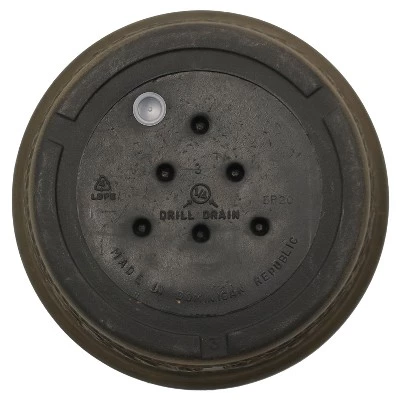 Give plants an elegant base on the patio or porch with this decorative plant container. Ferns, flowers and other plants will look great in this traditional-style planter. Featuring an ornamental leafy vines design, this planter evokes the look of classical-style plant containers found on English manors and estates. The hand-painted finish gives this piece an attractive time-worn look with a rich, warm color reminiscent of metal. While this flower pot has the look of an older vessel, it is made with very modern materials. The linear low-density polyethylene construction helps this planter withstand the elements, from resisting cracking from cold temperatures to combating damage from harmful UV rays. It is also built to shield and insulate plant roots from sudden changes in temperature, thanks to the full-depth inner wall. Another great benefit of this double-wall structure is that the space between the walls can be filled with sand or gravel to keep the planter in place in windy areas. Additionally, the planter can also be used as a decorative accent inside the home when paired with a protective saucer.