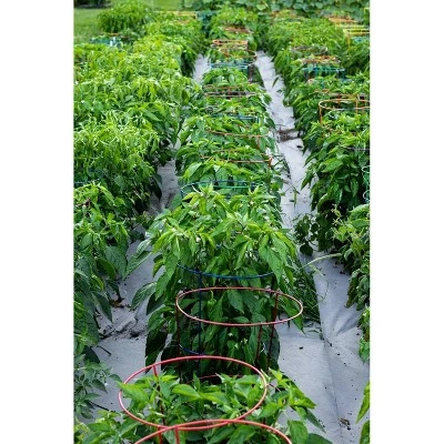 Give your tomatoes and other vining plants the support they need to grow with the Glamos Wire 54 in. heavy duty red tomato cage. Plants that grow inside a cage utilize the sides of the cage to support the stems and need fewer ties. Just place one plant inside the cage and guide the stems through as they grow. This tomato cage is ample enough to help keep even the largest tomato plants contained and under control without blocking sunlight or rain, but be sure to keep plants growing tall and off the ground for better air circulation. The large openings make harvesting easy and its galvanized finish makes it reusable season after season. This cage can be used in a garden bed, raised garden, or for container gardening while the orange color can help with organization of different plants while also giving an aesthetic look to your garden. These cages are easy to take out at the end of the season and are stackable within each other for easy storage. Made in USA.