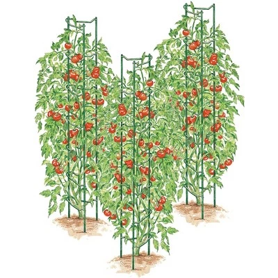 If you have a really big tomato crop this year, will your plant supports be able to handle the load? Our exclusive Tomato Ladders are the sturdiest you can buy, because they๏ฟฝre made with 7mm steel uprights โ 20% thicker than others on the market! They๏ฟฝll last season after season too, thanks to a weatherproof powder coating. Best of all, our Tomato Ladders are better for your plants. The rounded-V shape protects plants from wind and accidental breakage. The seven cradle-shaped cross-members give multiple places for vines to rest, and make it easy to set the ladders into the ground. Tomato Ladders will make the most of your garden space, reduce pests and disease, and give you a bigger harvest of juicy, unblemished fruit โ guaranteed!