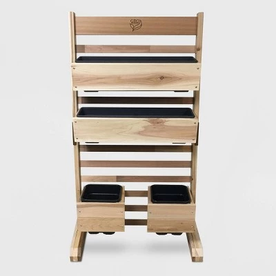 The GRO Products Vertical GRO System may have a small footprint, yet it will change the way you garden in a big way. With the Drip Irrigation System, you will GRO-more, and water LESS ! This Irrigation kit is specially sized for all VGS products. To water your garden with ease, simply follow the assembly directions and attach the garden hose. The VGS is quick and easy to assemble-it only takes a few minutes. The VGS is constructed right here in the USA with unfinished Cedar. The kit includes 1 Irrigation System, a set of 4 casters and 2 removable 24-inch-wide and 2 removeable 8″ square planter boxes that can be adjusted on the VGS to accommodate different plant heights. Included with each VG Box are removable, heavy duty plastic liners. These plastic liners provide a barrier between the soil and cedar. And here’s a helpful hint: you can remove the plastic liners and conveniently plant them on your potting table. Cubic foot of soil needed: 1.73. VGS provides 5.88 linear feet by 6 inches wide planting space. All assembly hardware is included. VGS overall measurement is approximately 28โ wide by 48โ High.